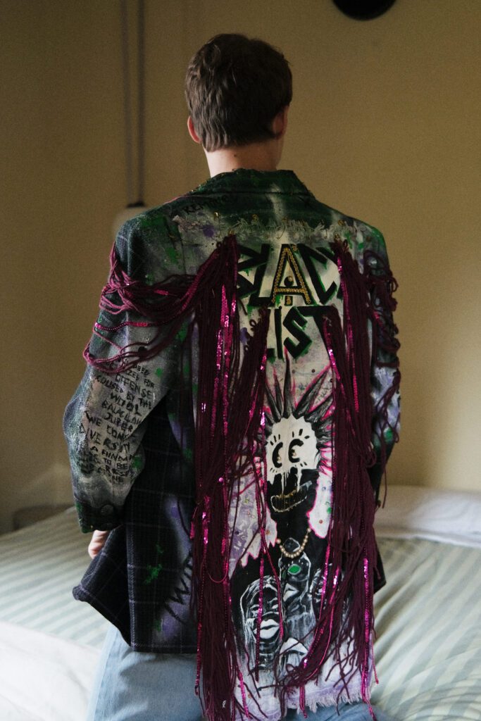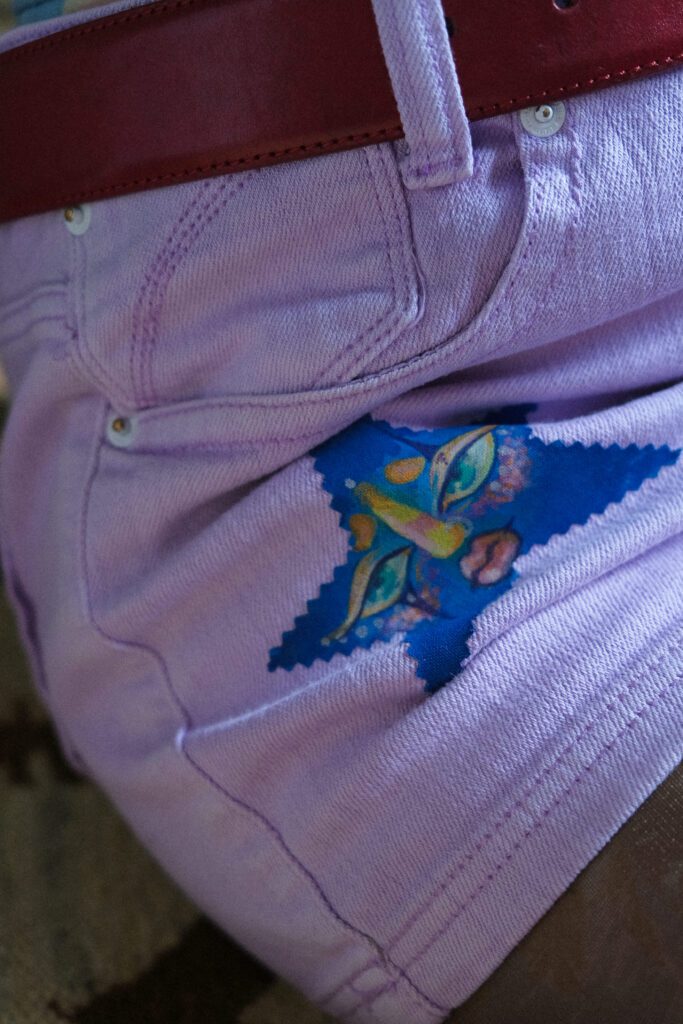 Questo legame istintivo con l’arte e la mia passione per rigenerare ciò che esiste già, mi hanno portato a sviluppare un linguaggio che oggi si manifesta nella pittura su tessuto. Giacche, pantaloni o felpe diventano opere vive, che raccontano storie e valorizzano chi le indossa. La mia laurea in Grafica presso l’Accademia di Belle Arti di Lecce, culminata con una capsule collection sull’upcycling, ha dato forma a una visione che intreccia arte, moda e sostenibilità. Ridare valore a un capo per me è un atto di cura e attenzione, un simbolo di unicità e autenticità. Attraverso i miei capi dipinti, trasformo l’ordinario in qualcosa di unico.