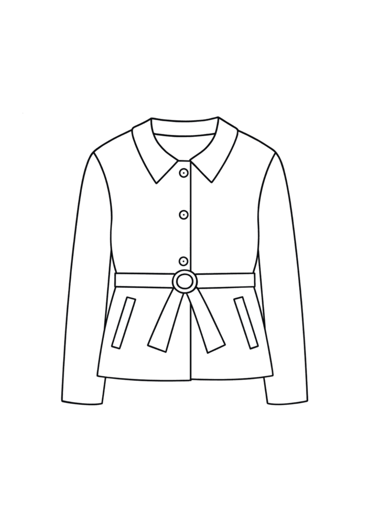 Dal tessuto ricavato dal fondo viene realizzata una cintura removibile con fibbia, pensata per esaltare il punto vita e offrire la possibilitĂ di giocare con la vestibilitĂ del capo.