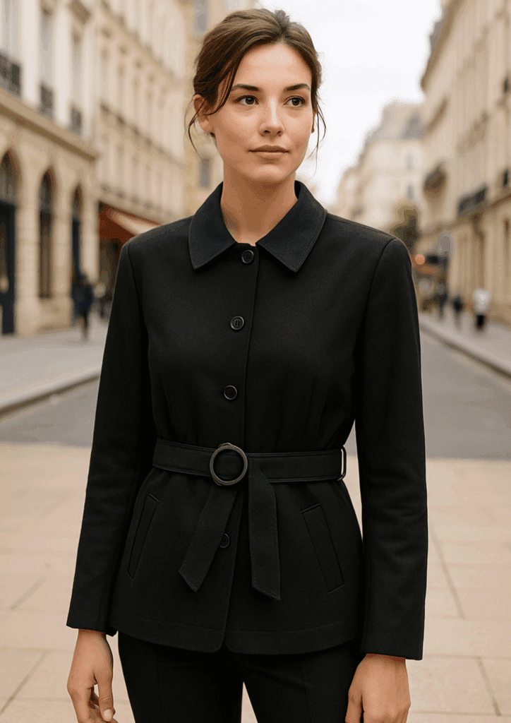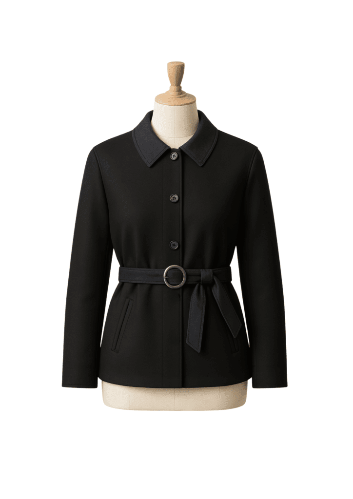 Il cappotto viene accorciato, trasformandosi in una giacca dalla linea piĂą versatile e contemporanea.