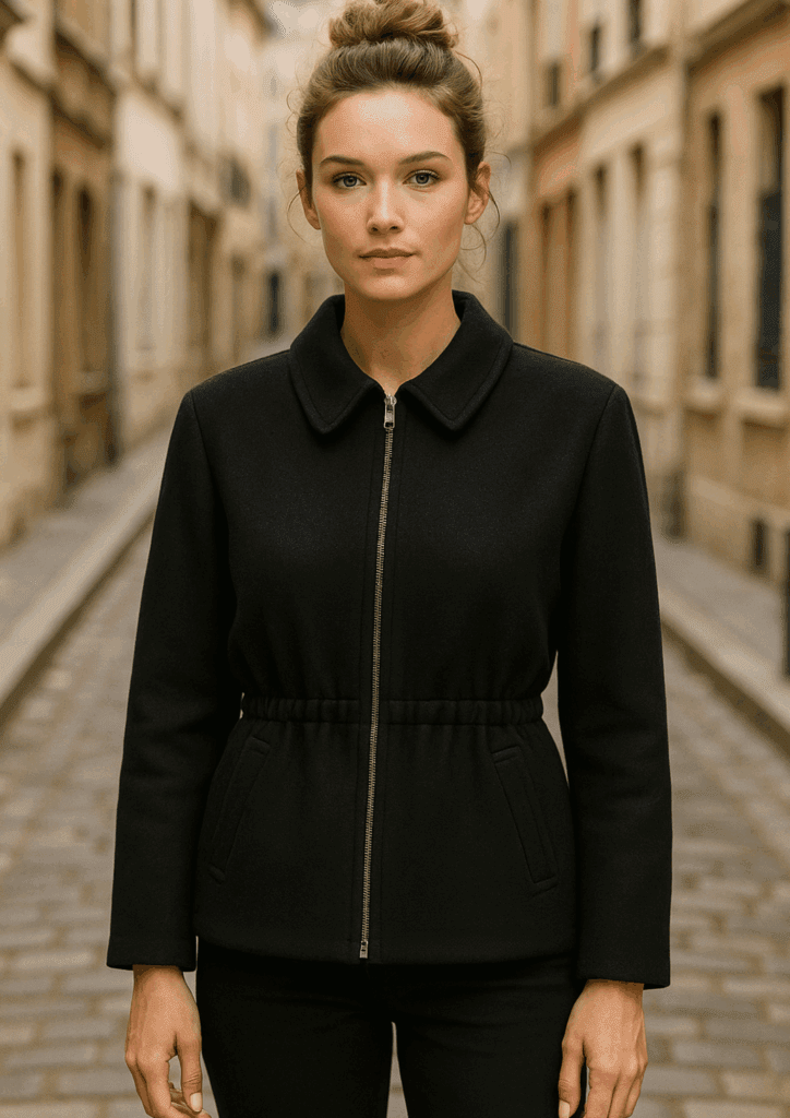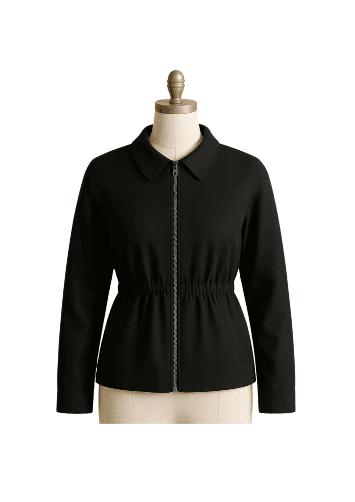 Il cappotto verrà accorciato per alleggerirne la linea e renderlo più contemporaneo. L’abbottonatura originale sarà rimossa e sostituita da una zip, scelta che contribuirà anche a ridurre leggermente le ampiezze del capo. Per valorizzare ulteriormente la silhouette, all’altezza del punto vita verrà inserito un elastico interno, così da definire meglio la forma e creare un effetto più armonioso e femminile.