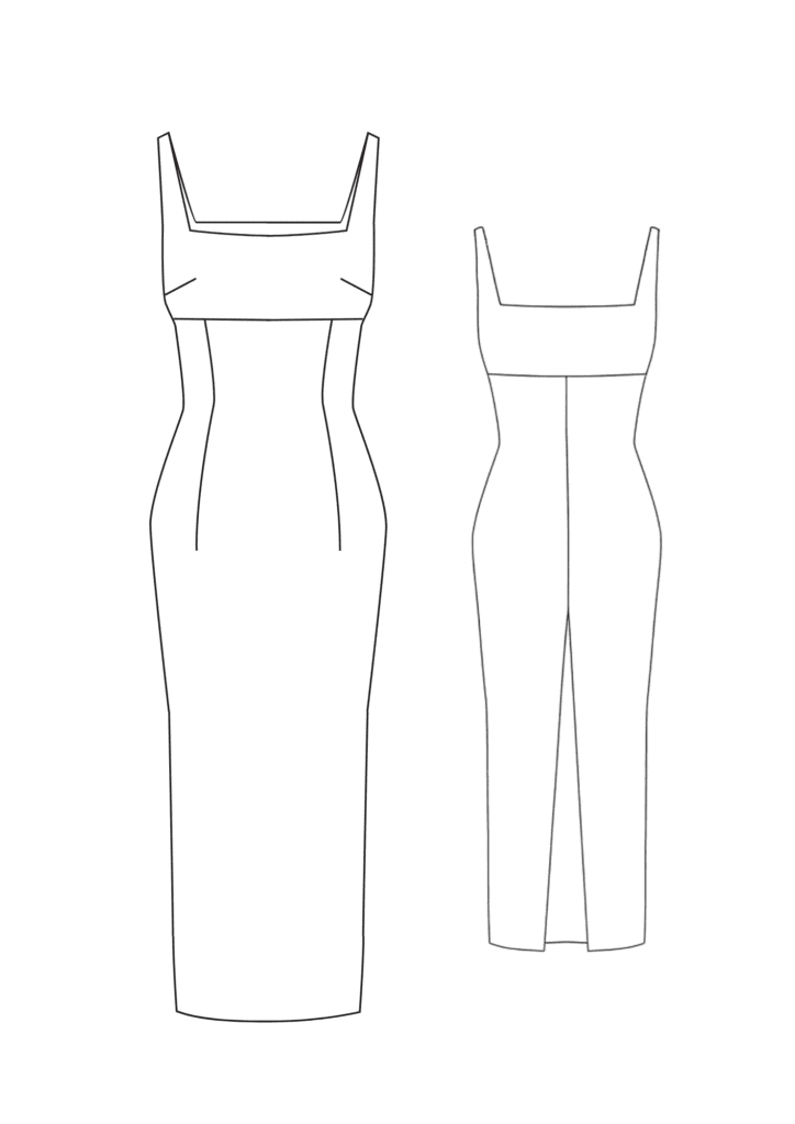 L’abito da cerimonia, romantico e tradizionale, viene trasformato in un tubino – midi o maxi- essenziale e sofisticato. Il nuovo capo, con scollo quadrato e taglio sotto al seno, assume un’aura contemporanea e sensuale, mantenendo l’eleganza del tessuto originale ma alleggerito da ogni ornamento. Un’interpretazione moderna della femminilità, più asciutta, decisa e senza fronzoli.