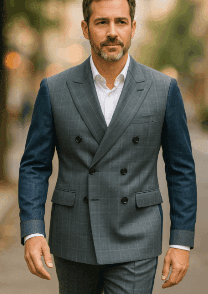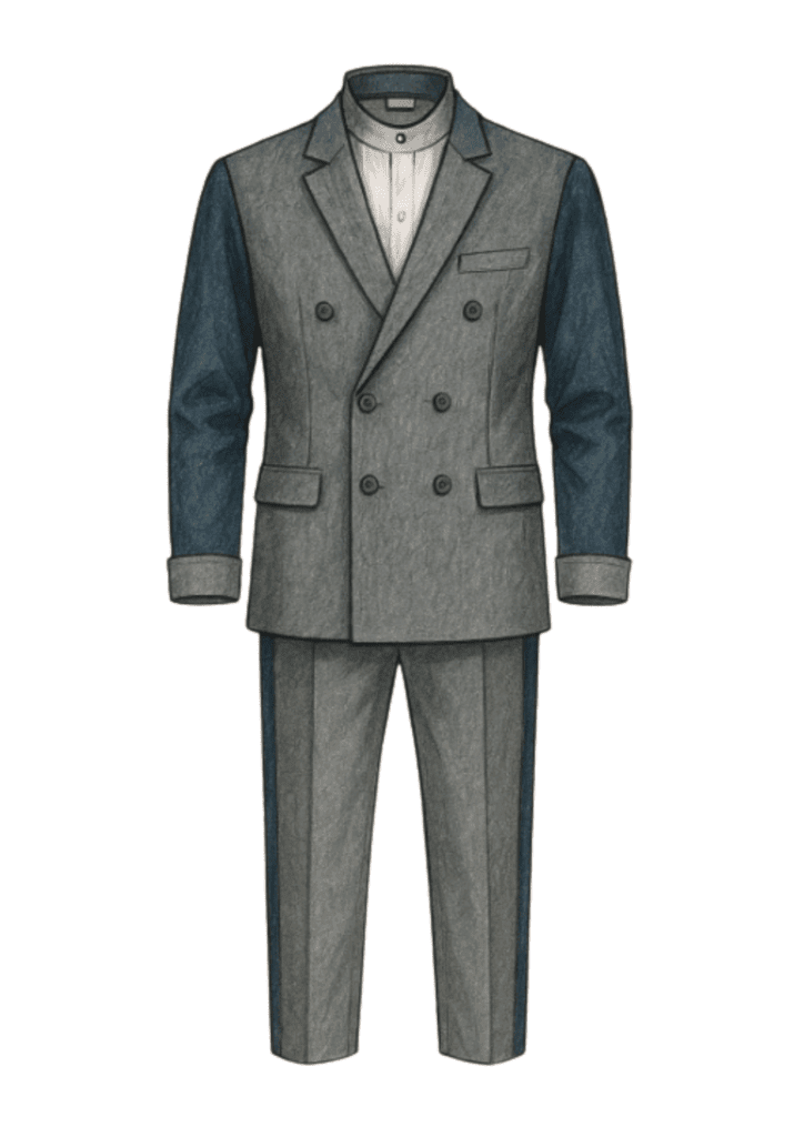 Un restyling che unisce sartorialità e innovazione, trasformando un classico completo doppiopetto in un capo unico e dal carattere deciso.