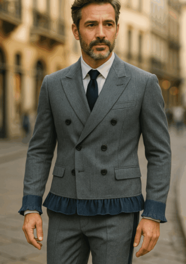 Un restyling che unisce rigore sartoriale e leggerezza creativa, trasformando il completo in un capo unico e pieno di carattere.